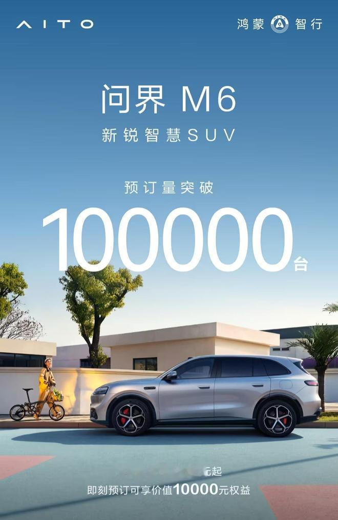 据IT之家此前报道,4月11日,鸿蒙智行官宣问界M6预订量突破10万台。