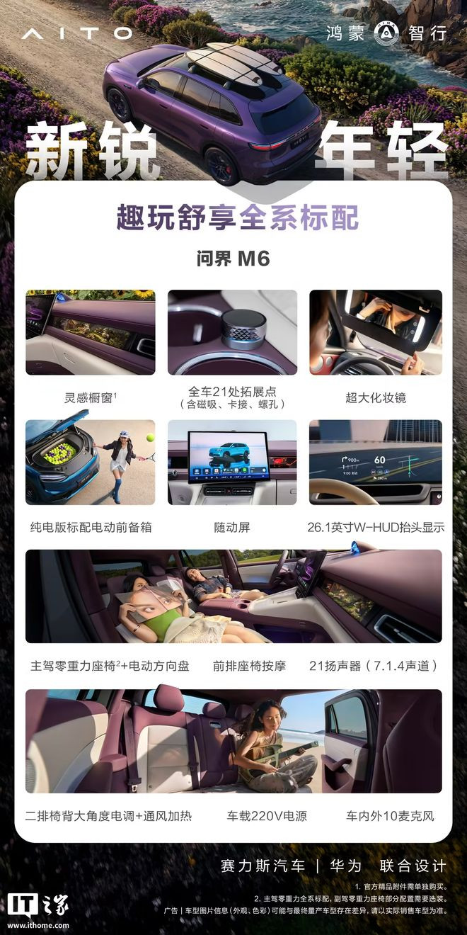 问界M6于3月23日开启预售,新车主打年轻市场并首次全系标配全球量产最高的896线双光路激光雷达,预售价增程版26.98万元起、纯电版28.98万元起。