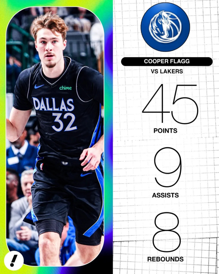 这两场比赛意义太大了,对阵魔术让弗拉格成为历史最年轻50分先生,对阵湖人则让他成为历史最年轻45+5+5球员。
